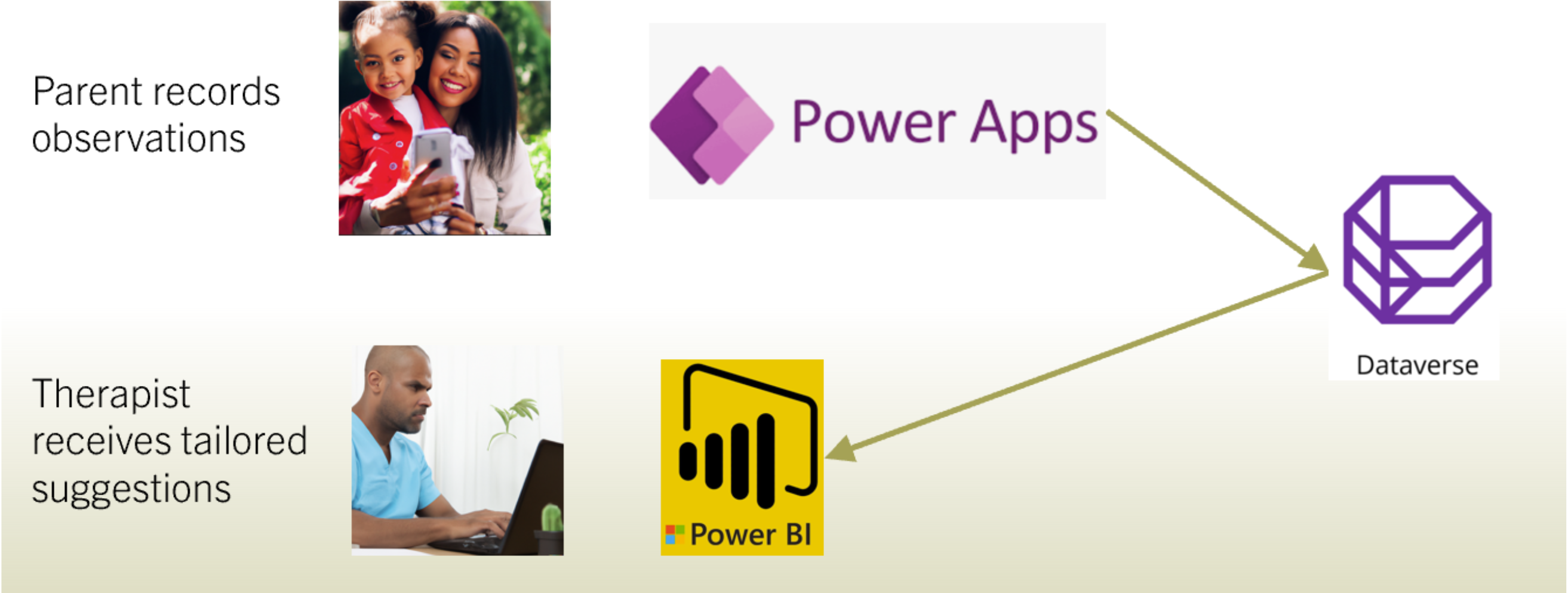 Our technical solution involved the development of an intuitive app using PowerApps, which seamlessly stored behavioral data in Microsoft Dataverse. Leveraging AI, we analyzed this data in conjunction with historical records from the same child and others to identify trends and generate precise recommendations. These insights were made accessible to therapists through Power BI, enhancing the decision-making process for child-specific therapeutic interventions.